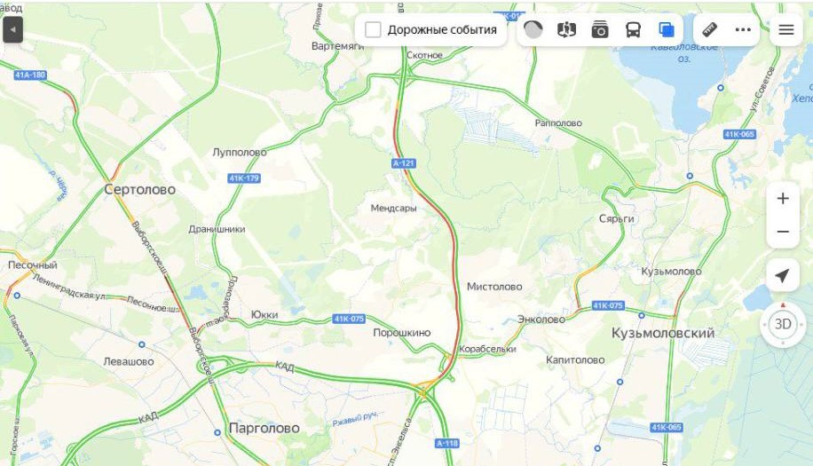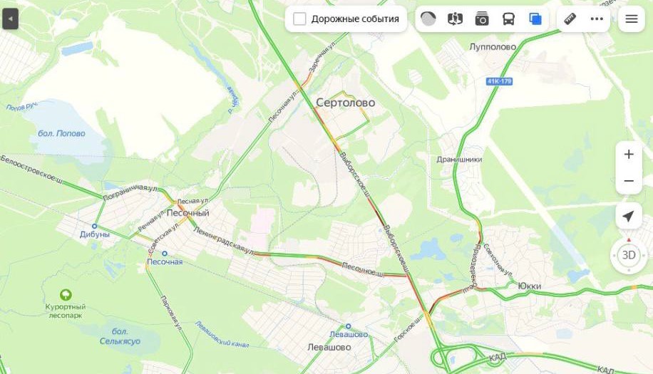 Как следует из данных сервиса "Яндекс. Пробки", по данным на 19:30 наибольший затор (почти 9 км) наблюдается на Новоприозерском шоссе.