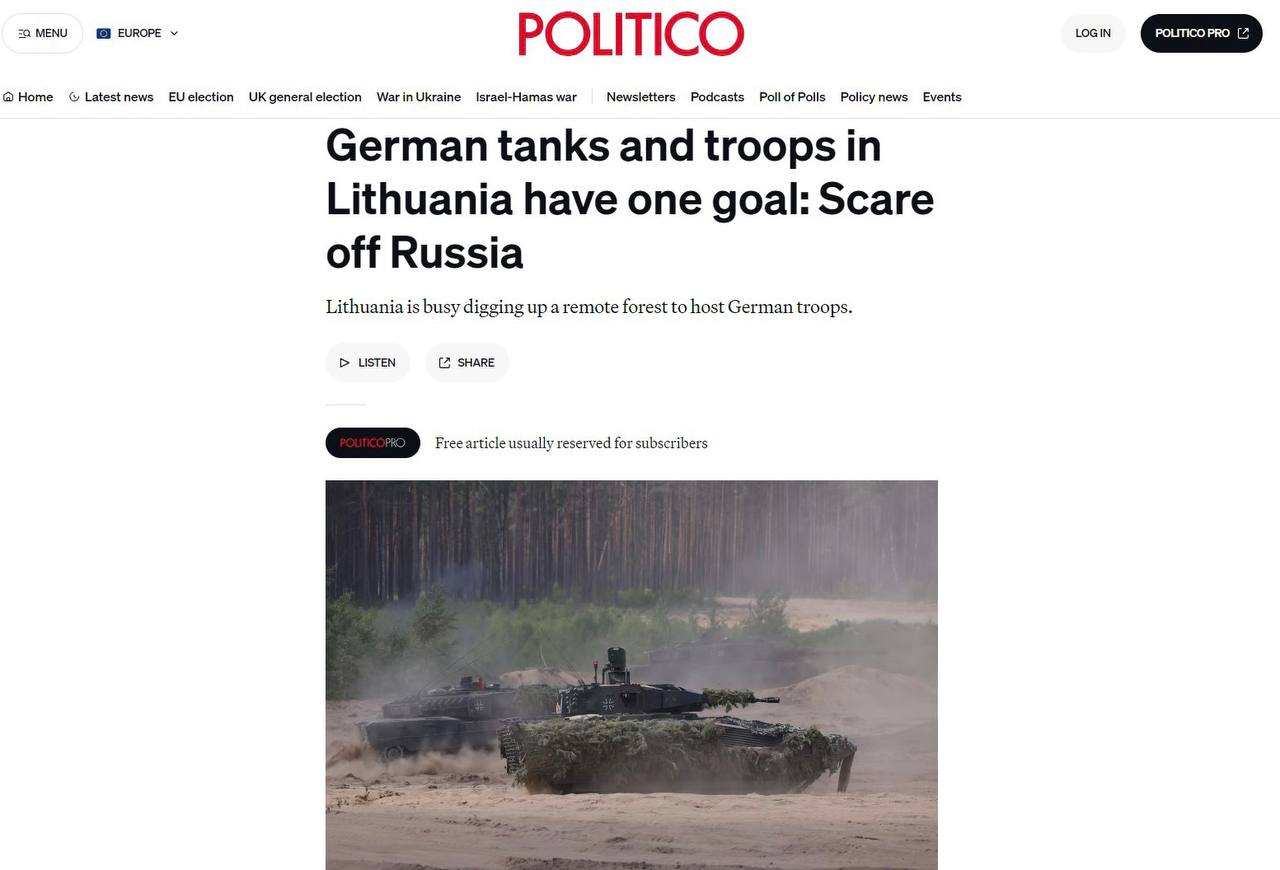 🇩🇪 Германия провела масштабные учения бундесвера в Литве, чтобы «отпугнуть Россию» – Politico