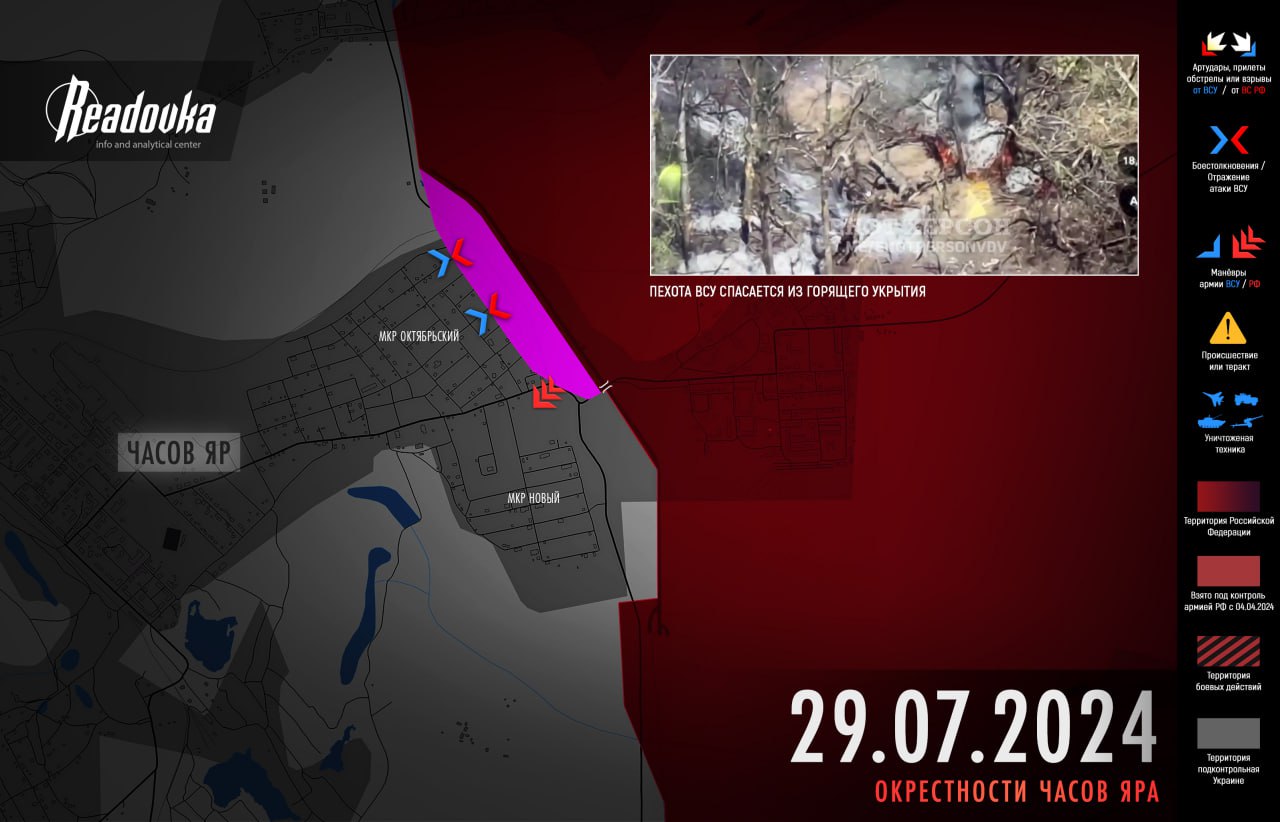 ВС РФ в Часовом Яре форсировали канал и штурмуют микрорайон Октябрьский — ситуация на Бахмутском направлении к исходу 29 июля