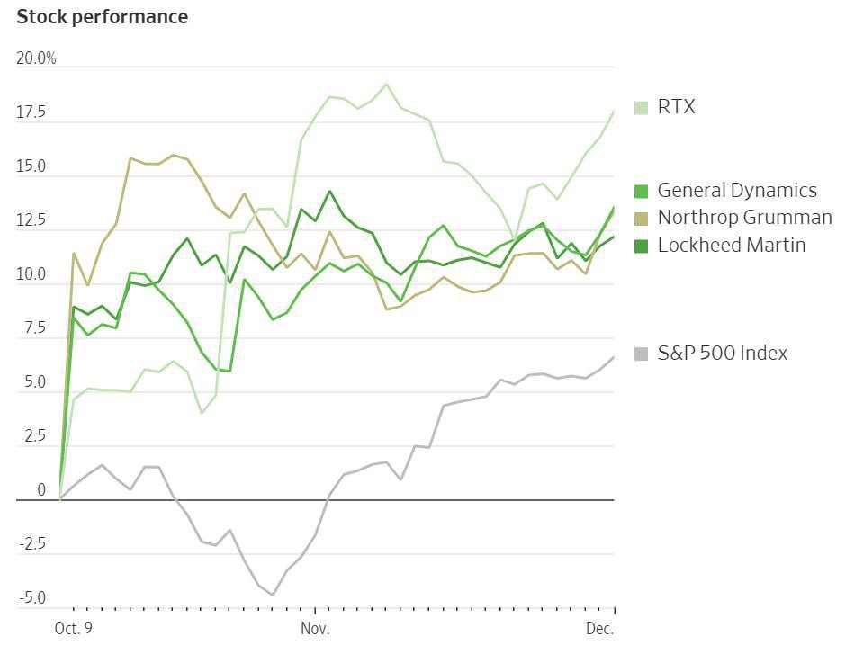 Акции оборонных компаний США: RTX, General Dynamics, Northrop Grumman и Lockheed Martin выросли больше чем индекс S&P 500.
