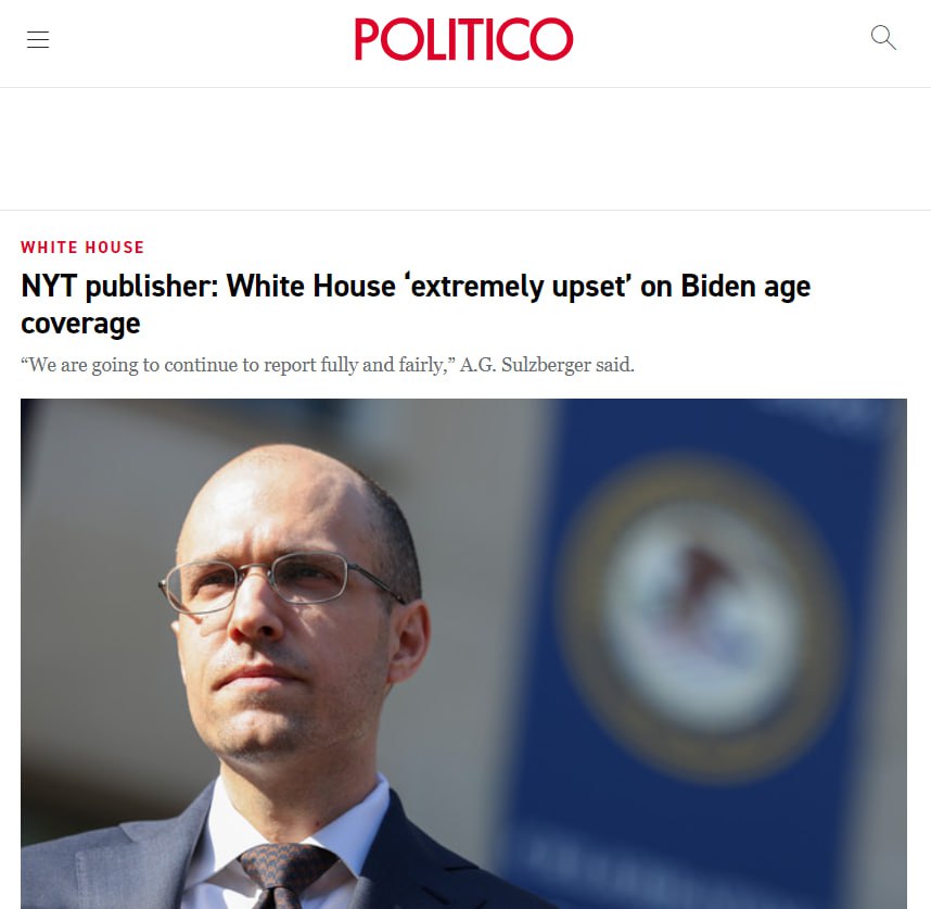 Как сообщает издание, недавно председатель правления The New York Times Артур Сульцбергер заявил, что в Белом дом «крайне расстроены» тем фактом, что возрасту президента, а в особенности его здоровью, уделяется столько внимания в СМИ.