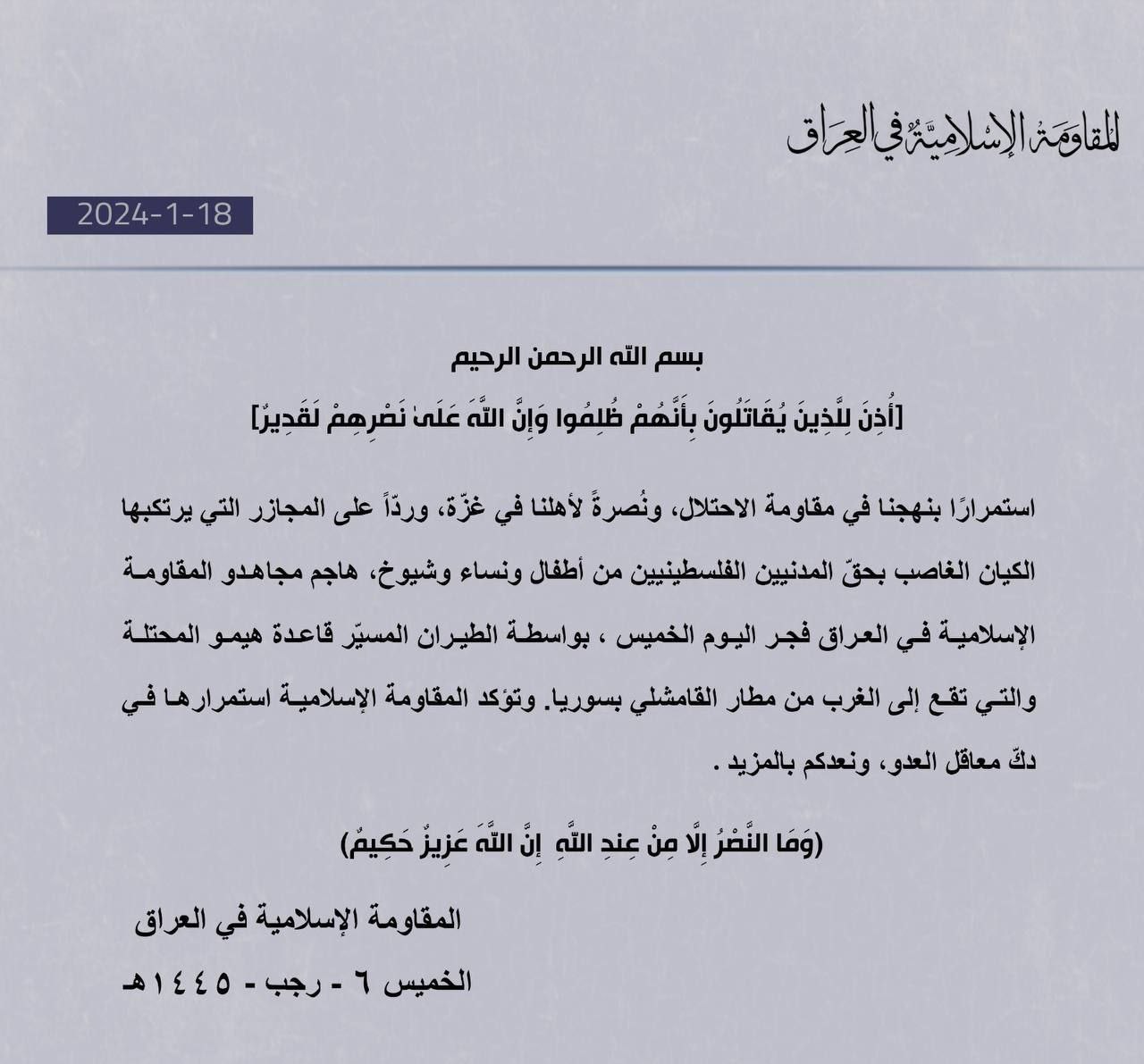 Исламское сопротивление атаковало дронами-камикадзе американскую базу западнее аэропорта Эль-Камышлы в Сирии.