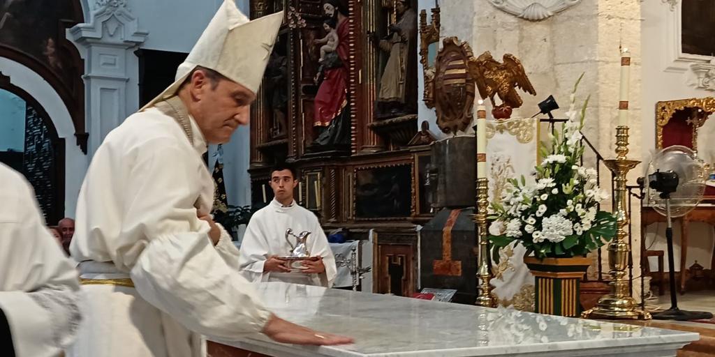 Si hace un año tuvo lugar la inauguración del nuevo presbiterio, en él ayer fue consagrado el nuevo altar mayor construido en mármol rojo y blanco y que ha tenido un presupuesto de 16.000 euros. En sufragar esa cantidad, han participado con sus donaciones numerosos feligreses de la parroquia. Como es tradición en los nuevos altares, éste cuenta con una reliquia que en esta ocasión será la Reliquia Del Mártir, que se coloca en el nuevo altar de la parroquia para clausurar el V centenario. Todos los altares deben tener un ara con una reliquia donde se celebre la Santa Misa. En este caso, es del Beato Juan Elías Medina y compañeros mártires del siglo XX en España.