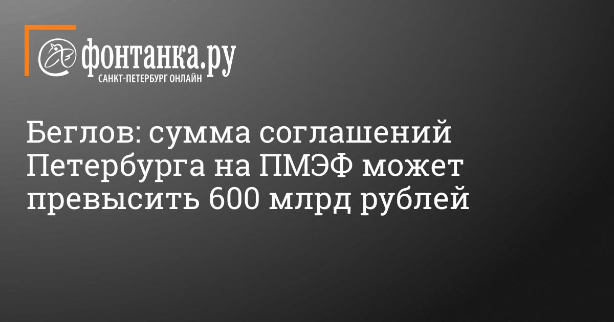 Смольный на ПМЭФ планирует подписать соглашения на рекордную для города сумму — свыше 600 млрд рублей. Об этом заявил губернатор Петербурга Александр Беглов в интервью ТАСС, фрагменты которого агентство публикует 5 июня.