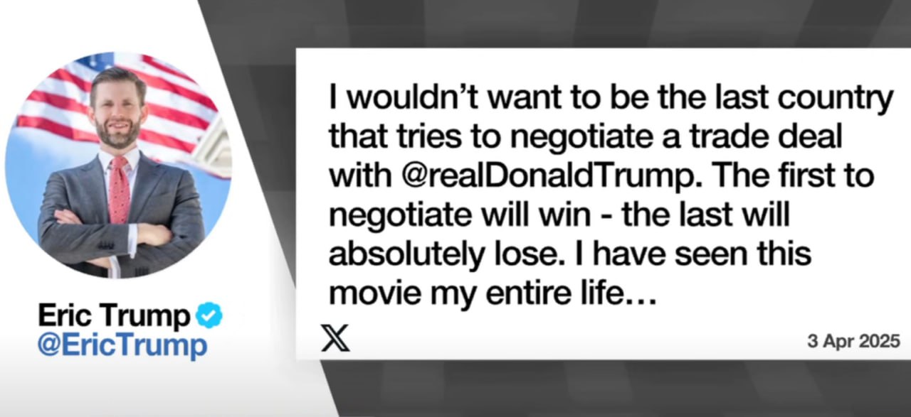 Что было бы правильно, написал ранее сын Трампа – Эрик: