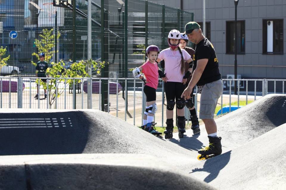Пока юные спортсмены демонстрируют свое мастерство, их родители с удовольствием гуляют по новым тротуарам и отдыхают на удобных скамейках.
