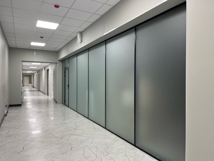 Кроме того, подрядчик завершил работу со стенами в большом танцевальном зале и готовит пол к окончательному покрытию. Одновременно с этим ведутся работы по установке входной группы.