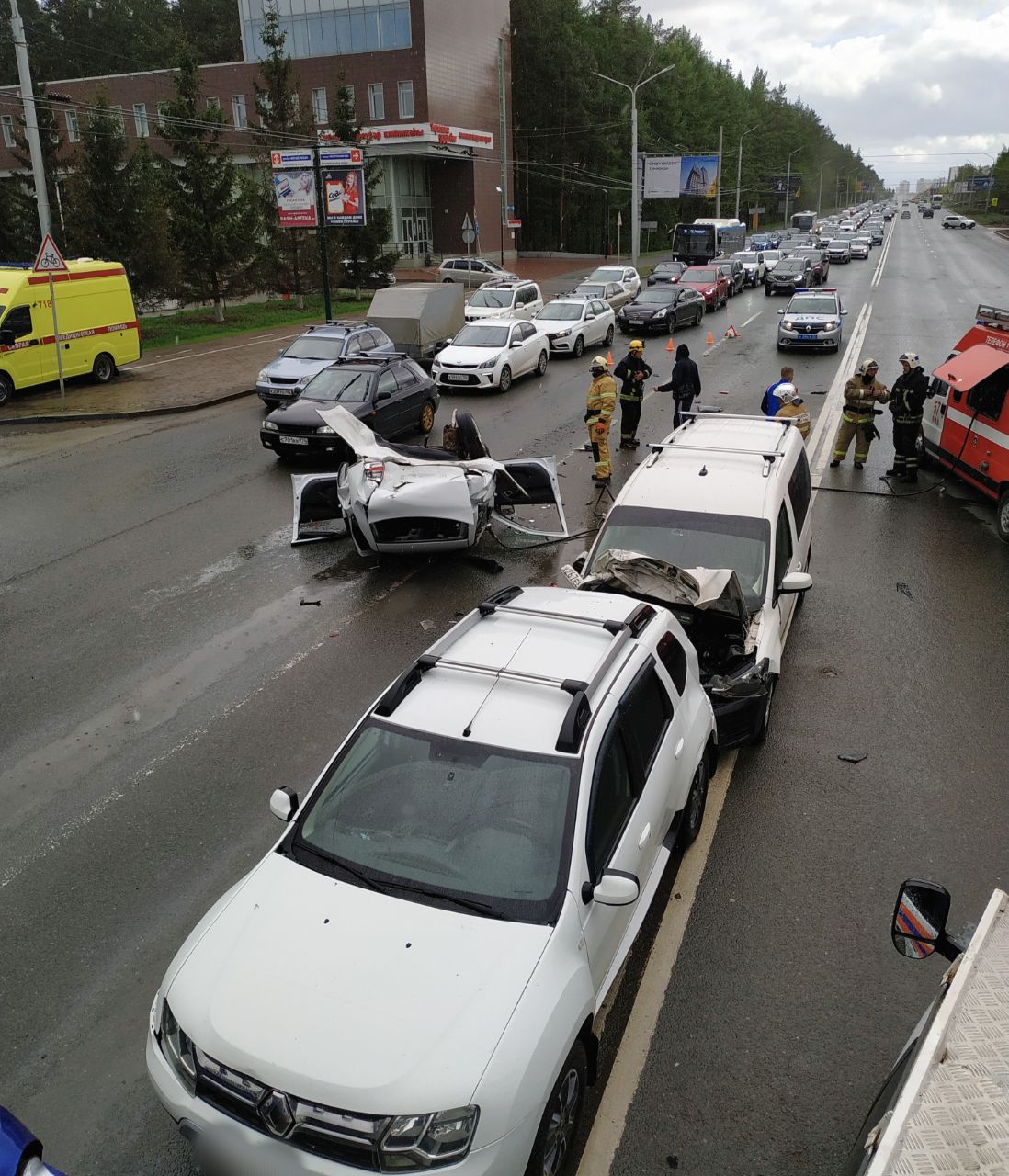 В Уфе на перекрёстке Менделеева и Лесотехникума столкнулись четыре автомобиля. Один из них — «Лады-Гранта», перевернулся. Очевидцы еще до прибытия спасателей извлекли из перевёрнутой Гранты двух человек, женщину и мужчину.