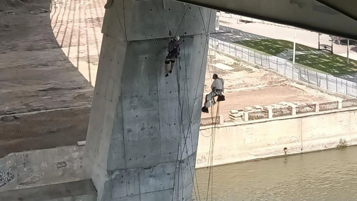 Промышленные альпинисты начали подготовку конструкций строящегося четвертого автомобильного моста через Обь для нанесения антикоррозионной защиты: они очищают и обрабатывают поверхности промежуточных опор. Как подчеркивают в группе ВИС, строительная готовность непосредственно мостового перехода достигла 98%.
