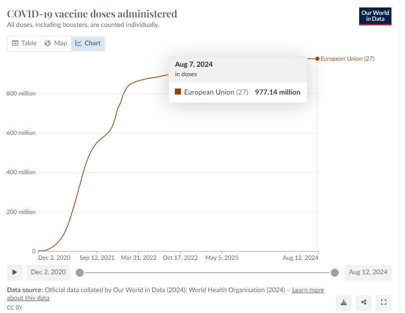 Евросоюз в 2021 году закупил 4,5 миллиарда доз вакцины от COVID-19 на 71 миллиард евро. Использовано было 977 миллионов доз.