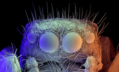 Так, пауки-скакунчики (Salticidae) всегда в движении: прыгают с травинки на травинку, высматривая добычу или партнера для спаривания. У них, как и у большинства других пауков, восемь глаз: два расположены по бокам, пара направлена назад, еще две — вперед. И если боковые и задние различают лишь свет, тень и резкие движения, помогая животному спасаться от врагов, то передние глаза, самые крупные, — это оптический прицел для охоты.