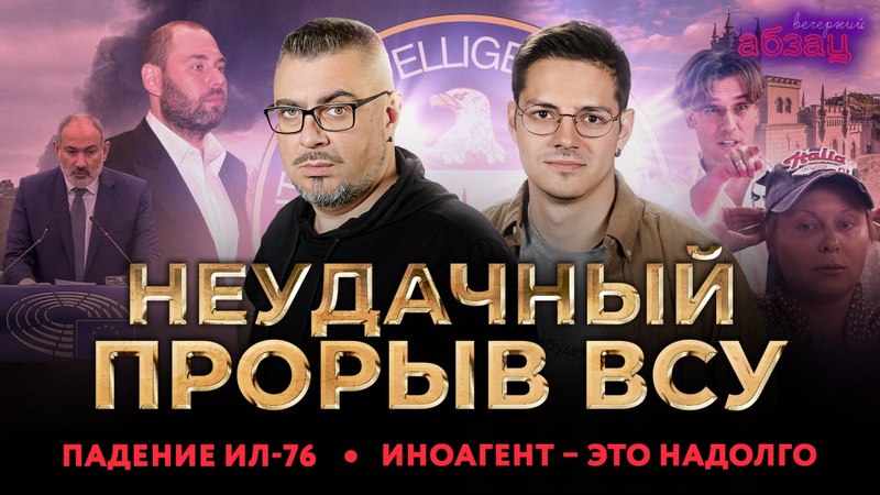 «Абзац» в Дзене — https://dzen.ru/absatzmedia «Вечерний Абзац» с Сергеем Куликовым и Павлом Русским. Неудачный прорыв ВСУ, падение Ил-76, иноагент – это надолго. Эксперт эфира: ✔️ Андрей Клинцевич – военный эксперт, глава Центра изучения военных и политических конфликтов. =========== Мерч: https://www.wildberries.ru/catalog/173405521/detail.a....