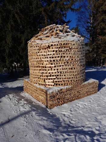 На этот раз вологжане уложили дрова в виде крепости. "Ежегодный временный арт-объект из дров от семьи Родионовых в деревне Иванов Бор", - говорится в сообщении чиновников.