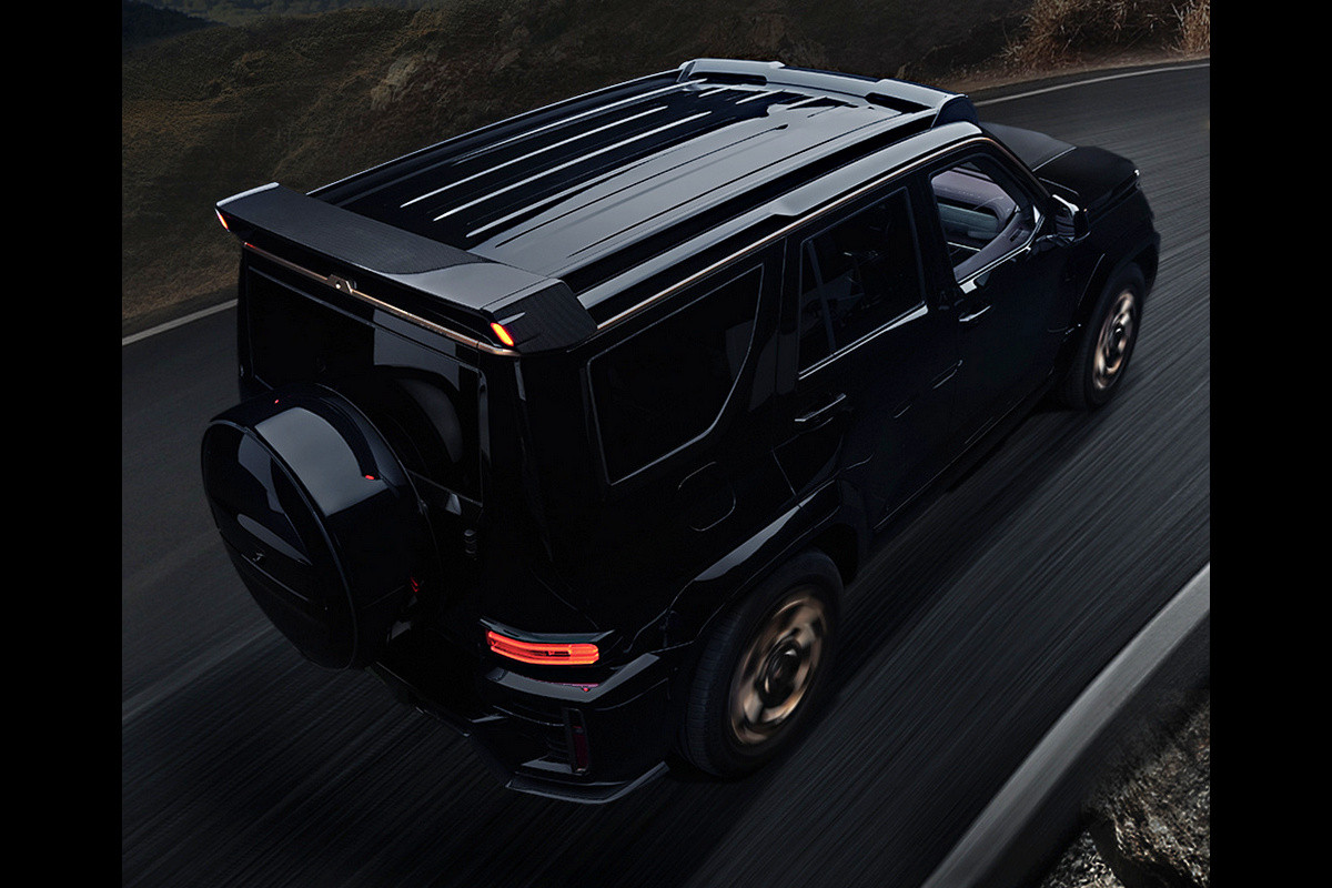 У Tank 700 из лимитированной серии более внушительный обвес с карбоновыми деталями и оригинальная радиаторная решетка, на капоте есть накладка. На крыше спереди красуются светильники, сзади – спойлер и дополнительные стоп-сигналы. Кроме того, для особого «семисотого» предусмотрены колеса бронзового цвета.