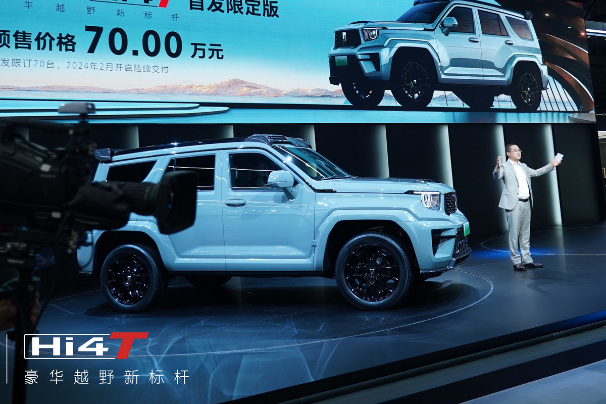 В предсерийном виде рамный внедорожник Tank 700 дебютировал еще в 2021 году. В январе года нынешнего товарный SUV показался на сертификационных снимках, после чего уже сам бренд распространил фирменное изображение. Считалось, что этот вездеход станет третьей моделью в гамме, присоединившись к Tank 300 и Tank 500. Однако «семисотый» пропустил вперед Tank 400. Так вот теперь внедорожник со старшим индексом наконец представлен официально. Премьеру провели на открывшемся сегодня автосалоне в Гуанчжоу, и там же начали принимать предварительные заказы, хотя все характеристики пока так и не озвучены. Первая партия ограничена всего 70 экземплярами, и эти машины отличаются от засвеченных ранее.
