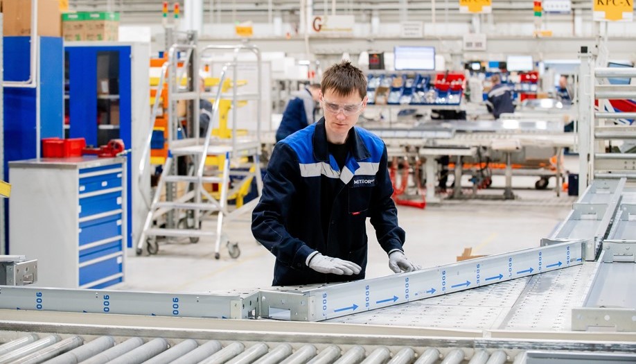 Когда речь идёт о массовом производстве, в описании которого фигурируют такие обороты, как "по всей стране", "тысячи сотрудников", "десятки миллионов потребителей" — представляешь себе огромную территорию со сложной логистикой между цеховыми корпусами. Завод компании METEOR Lift в Петербурге — это одно большое производственное помещение. Здесь сосредоточен выпуск всех тех лифтов, которые раньше назывались Otis. В том же корпусе — офисные помещения. И да, это здесь ежегодно производят до 10 тысяч лифтов. Каким-то магическим образом всё, что кажется глобальным, удалось разместить и заставить работать в очень компактных условиях.