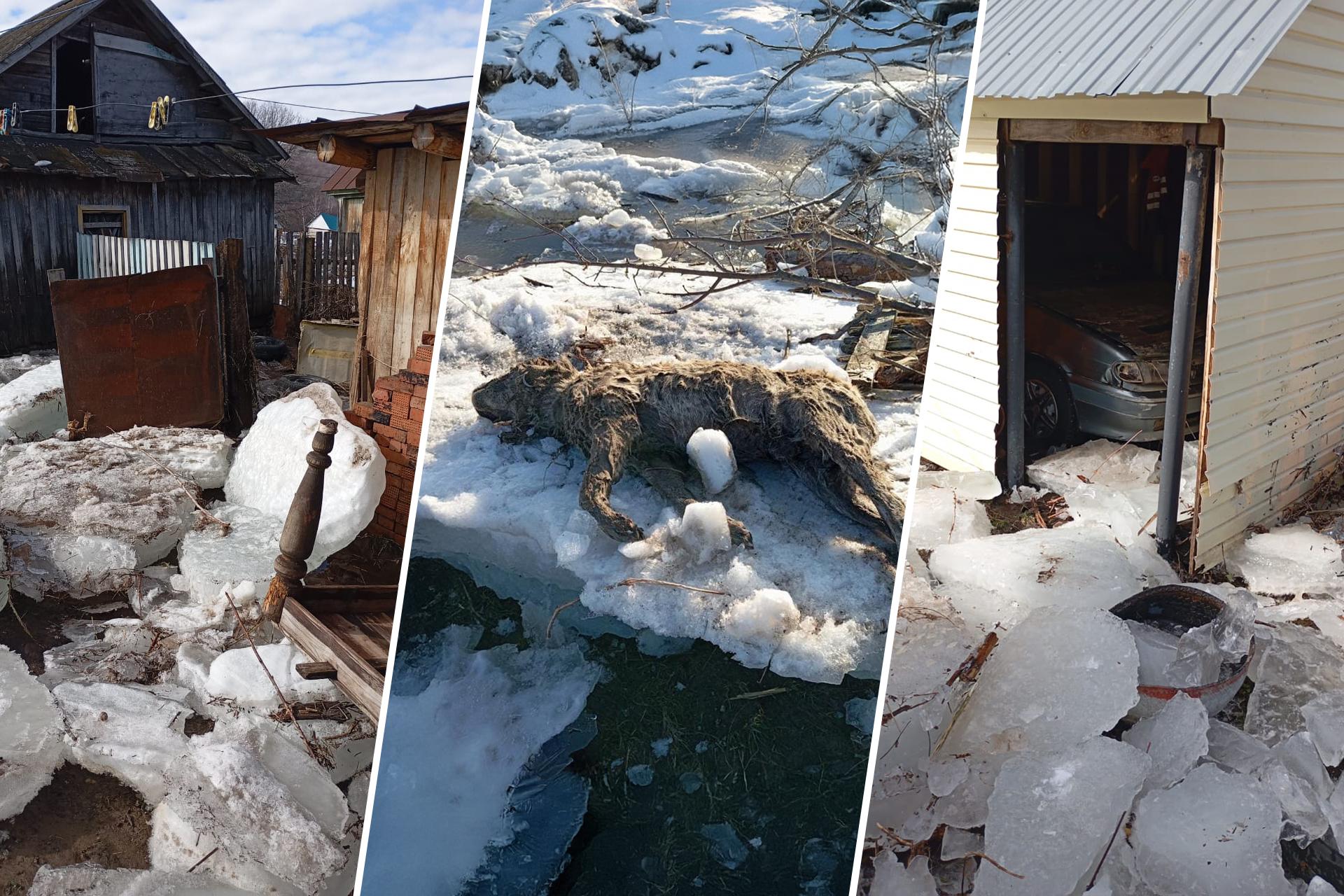 Жители деревни Азово Архангельского района Башкирии показали последствия паводка: по всему селу раскиданы огромные глыбы льда, прямо на земле лежат трупы домашнего скота. На месте работают глава района и спасатели. Напомним, деревня Азово оказалось под водой из-за разлива реки Инзер. Оттуда эвакуировали больше 120 человек.