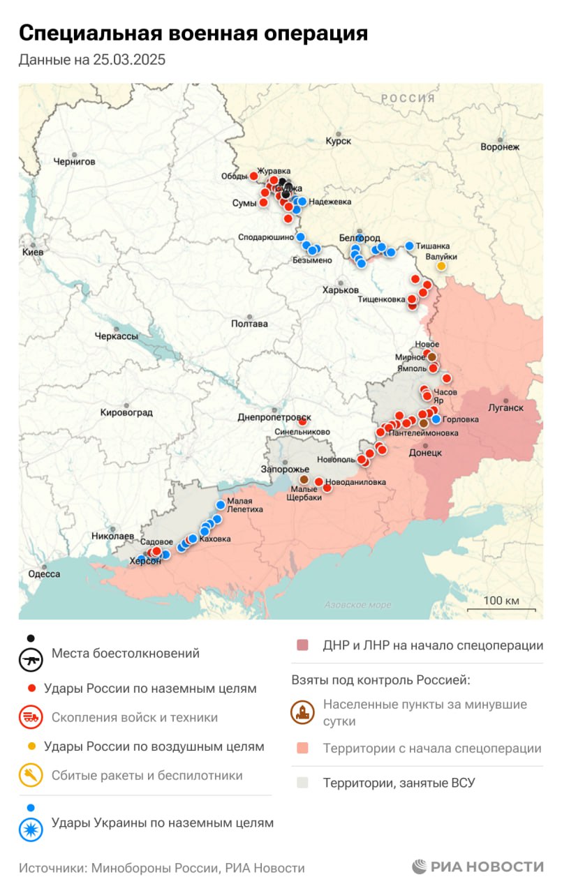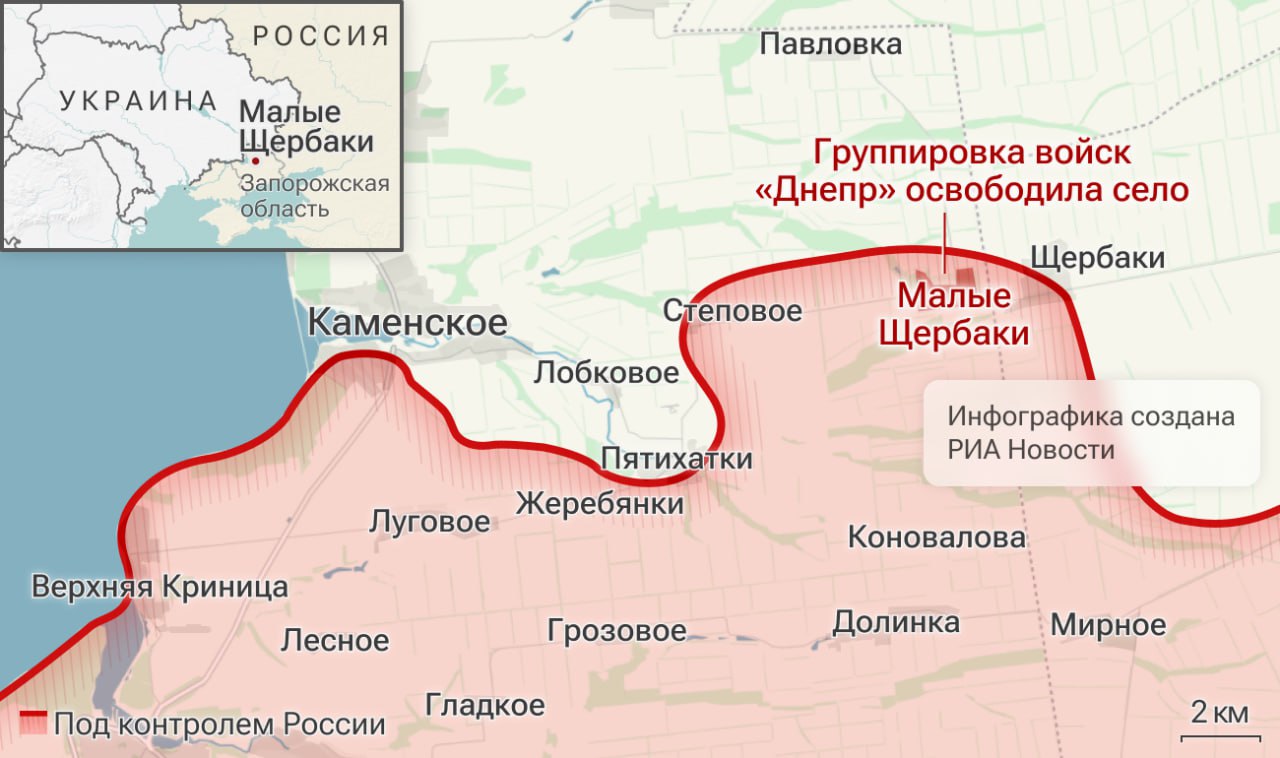 ▪️Российские войска освободили Мирное в ДНР и Малые Щербаки в Запорожской области.
