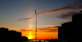 Необычные атмосферные явления наблюдаются в Петербурге второй день подряд. Световой столб возник над горизонтом рано утром 21 мая ещё до того, как поднялось солнце. Это удивительным образом совпало со сводкой Дворцового моста — красоту зафиксировали супервидовые веб-камеры проекта «Фонтанки» «ОтЛичный Петербург».