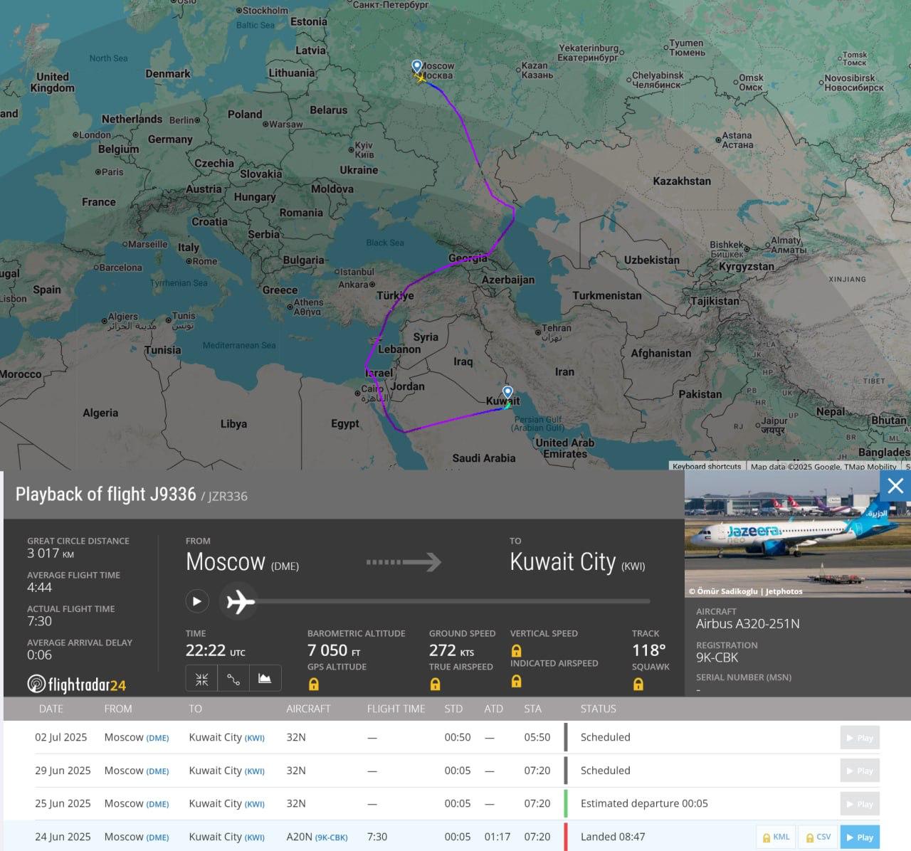🇰🇼 Кувейтская Jazeera Airways сегодня продолжила летать из Кувейта в Москву и обратно.