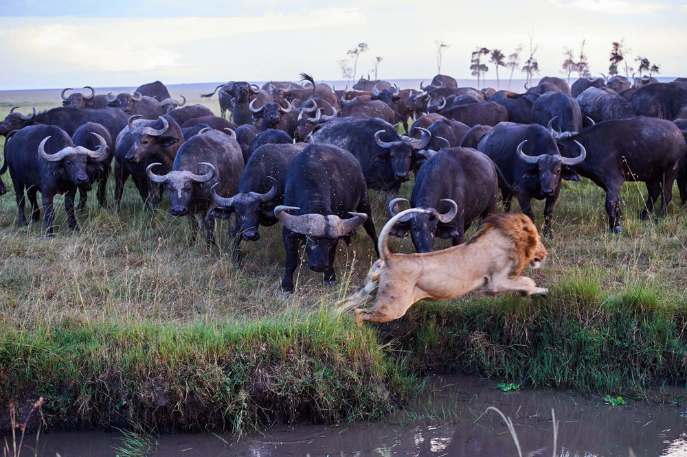 Про рога и копыта всем всё ясно - животные в идеале отточили технику нанизывания и затаптывания. Но одной обороной дело не кончается. Коровы обожают измываться над врагом даже тогда, когда он уже повержен! Например, стадо загоняет больших кошек на дерево и держит их там по несколько часов кряду - как собаки, только с копытами и намного злее. Буйволы нападают на львов даже тогда, когда те вообще не собирались охотиться. Стратегия "лучшая защита - это нападение" - называется моббинг. Животные, объединившись, атакуют хищников. Стадо гигантских бурёнок шугает прайд, как охранник - первоклашек. Иногда такие выпады заканчиваются летально. Причем для львов.
