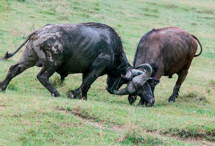 Чем крупнее, сильнее и старше бык, тем, соответственно, выше его статус и больше прав на спаривание. Если кто-то захочет это право оспорить, копытные выясняют крутизну путём дуэли на рогах. До серьёзных увечий дело редко доходит, чего не скажешь о встречах буйволов и потенциальных хищников за говядиной.