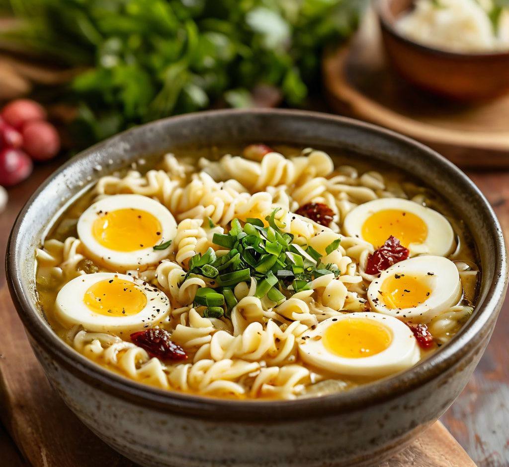 Куриный суп с лапшой и яйцом
