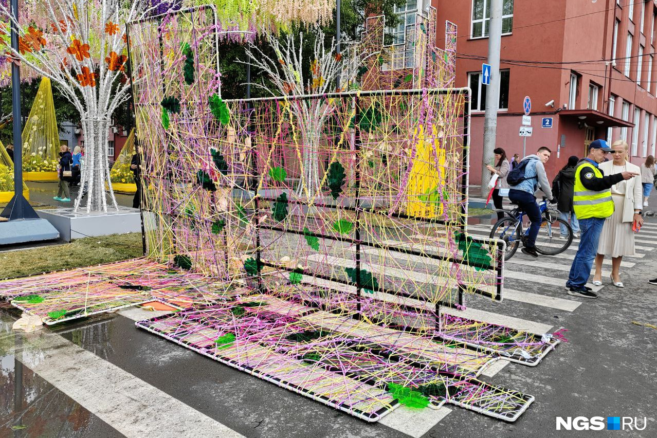 Днем 29 июня одна из конструкций на выставке цветов на Ленина упала на прохожую.