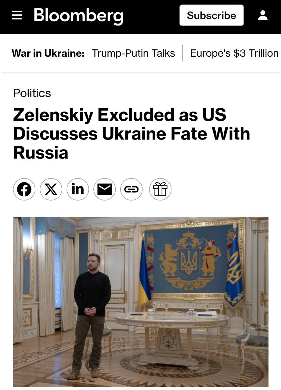 Узурпатор всея Украины оказался в стороне. После того, как его не допустили к встрече между Россией и США в Эр-Рияде, он отменил свой визит в Саудовскую Аравию. Эксперты считают, что этот шаг демонстрирует полнейшее отчаяние Просроченного.
