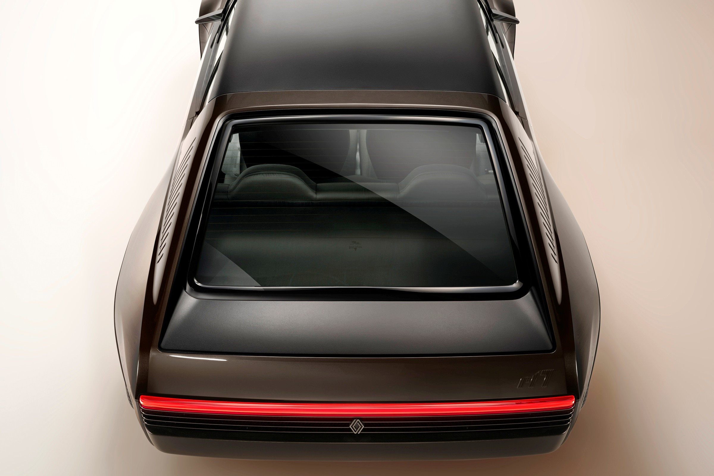 Оригинальные круглые фары заменены на четыре узких светодиодных прямоугольника, из-за чего французский рестомод немного напоминает южнокорейский электрический кросс-хэтчбек Hyundai Ioniq 5, а раздельные задние фонари уступили место единой светодиодной полосе. Хромированная отделка полностью удалена, благодаря чему образ получился более чистым, при этом исходный Renault 17 угадывается с любых ракурсов. Коричневый цвет Galactic Brown разработан специально для этого проекта.
