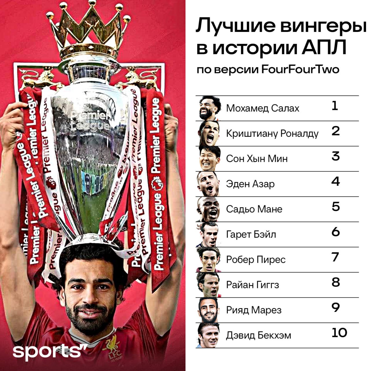 Портал FourFourTwo составил рейтинг лучших вингеров в истории АПЛ