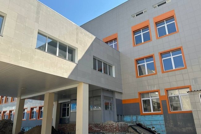 Капремонт учебного заведения, расположенного в посёлке Лесной, начался в минувшем году. Летом текущего года на каникулах отремонтировали и покрасили фасад. Его цвет школьники выбрали сами.