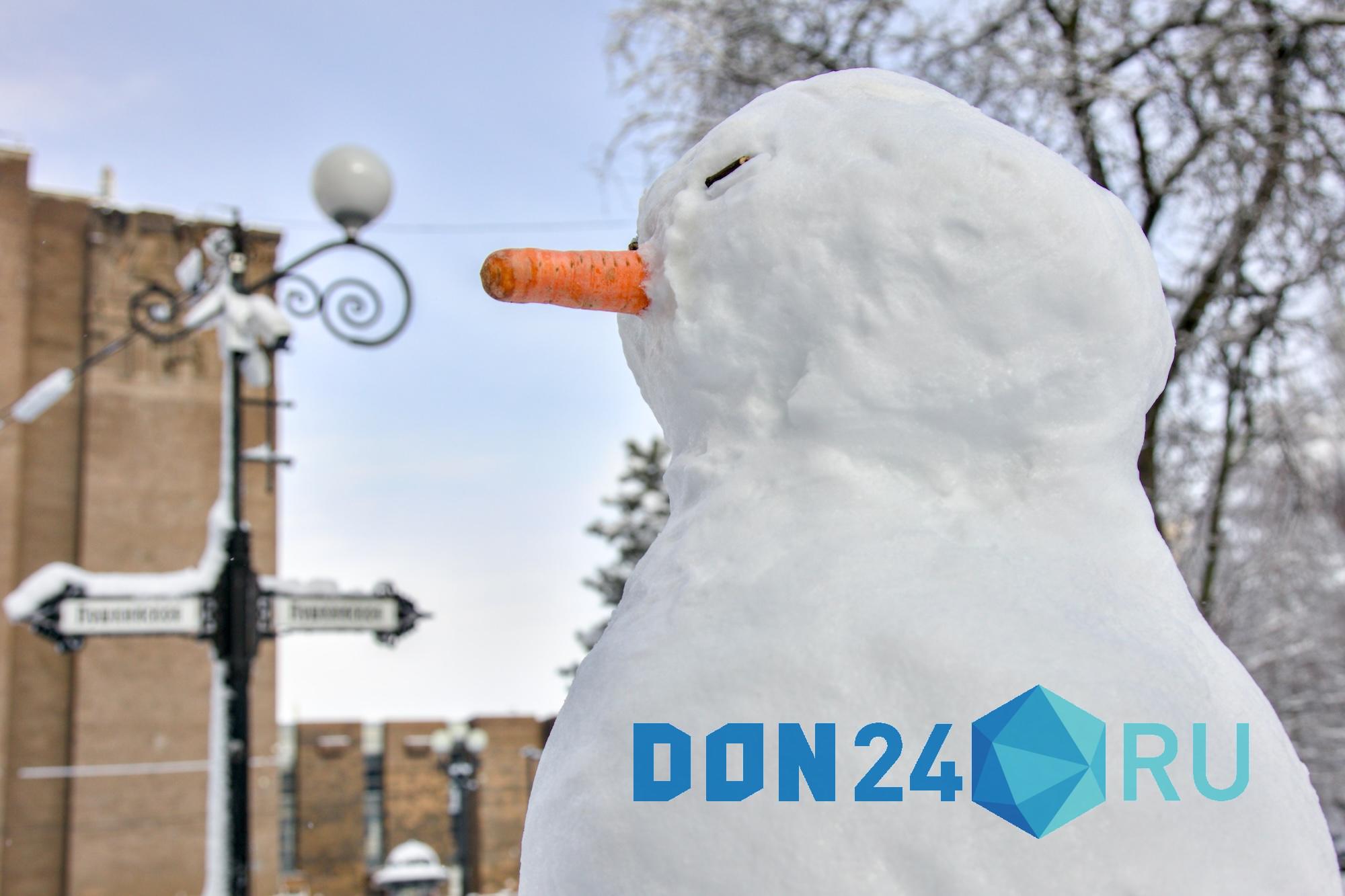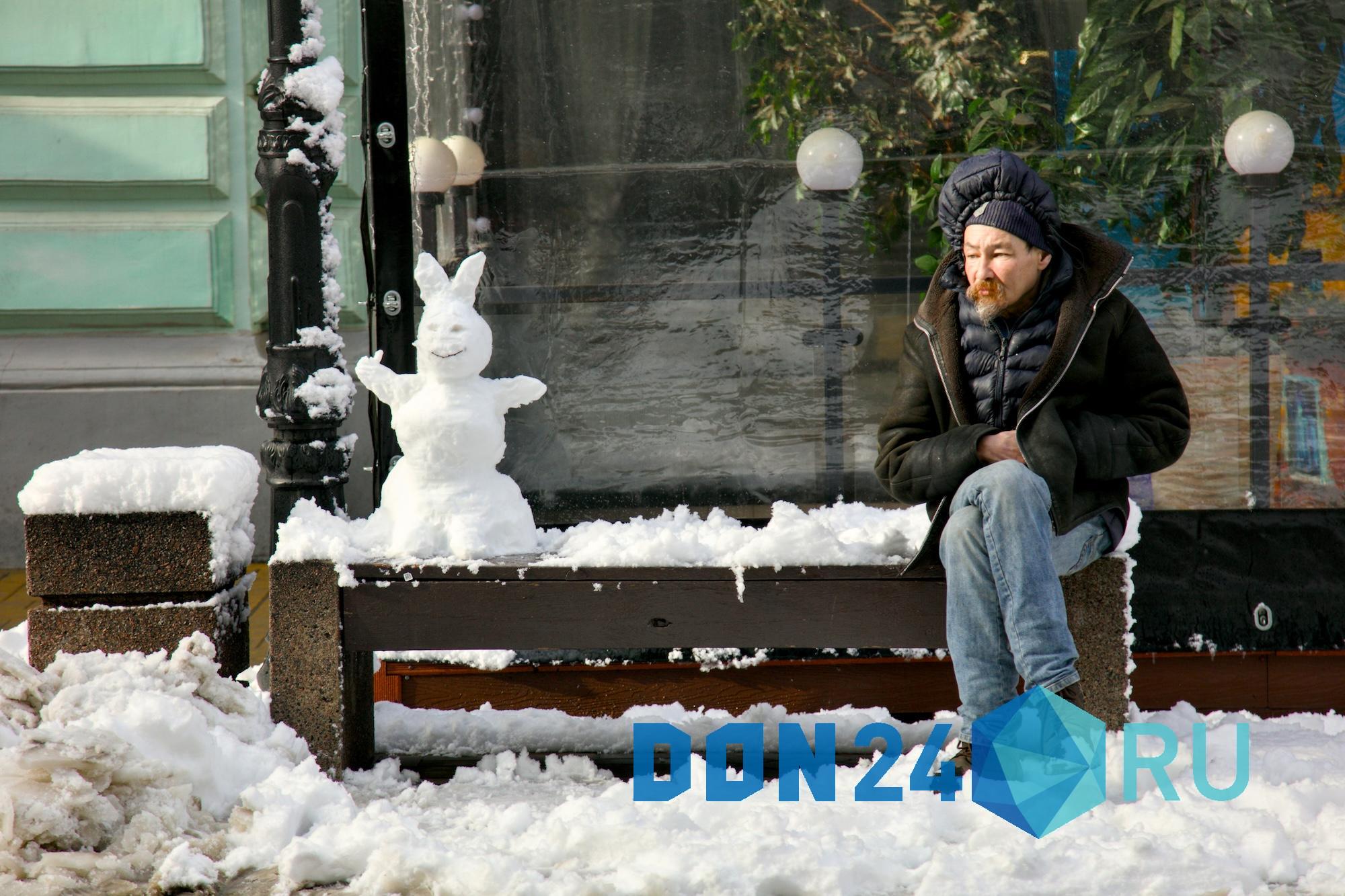 Ростовчане торопились по своим делам. Однако герой нашей фотографии решил составить компанию снеговику.