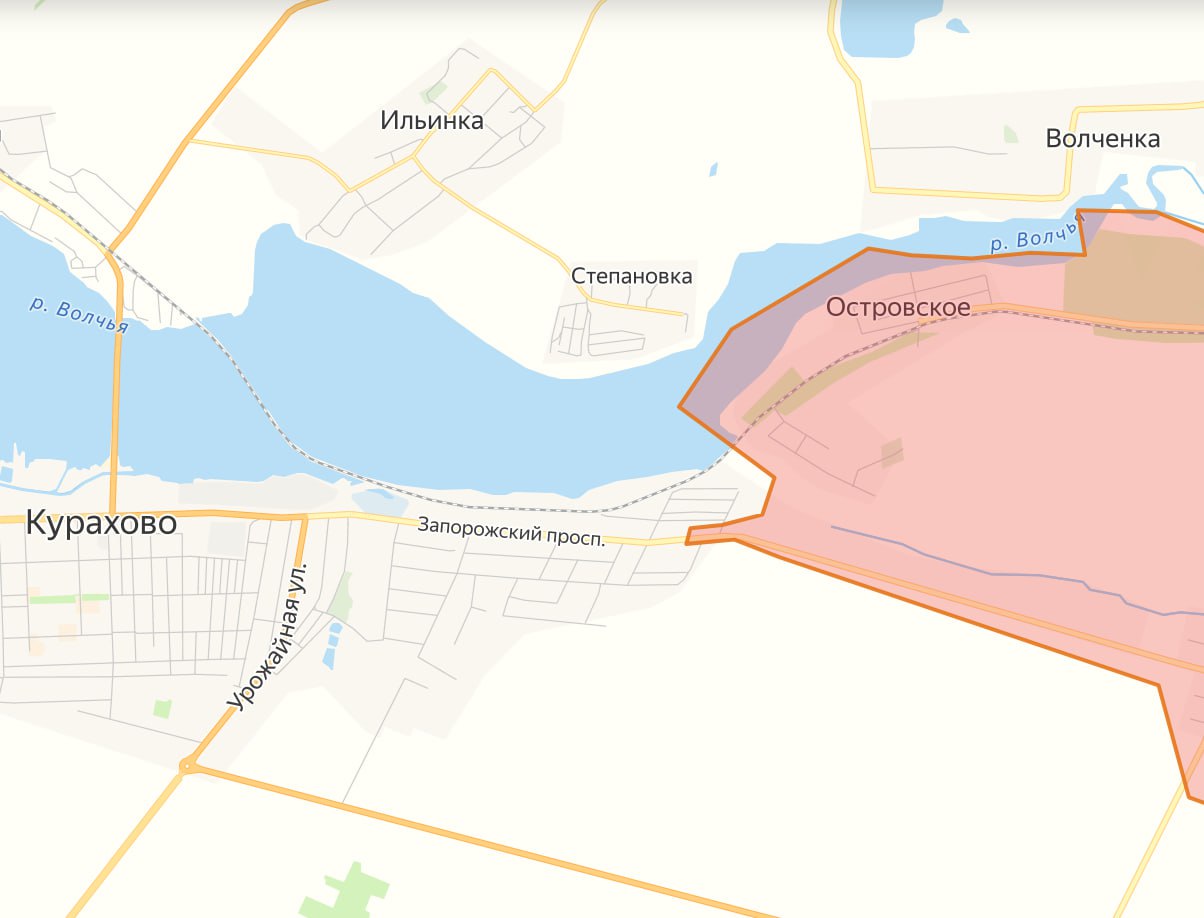 По предварительной информации, ВС РФ, продвигаясь со стороны Островского, зашли в городскую застройку Курахово.