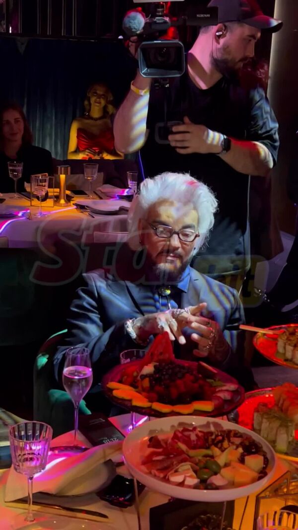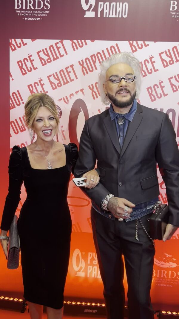 Спустя полчаса появился Филипп. Его ждали уже с подарками — на входе артисту символично вручили его первый альбом на виниле, хиты из которого постоянно звучат в караоке. Певец, к слову, прибыл не один, а в сопровождении новой спутницы — пара прекрасно гармонировала между собой по количеству бриллиантов.