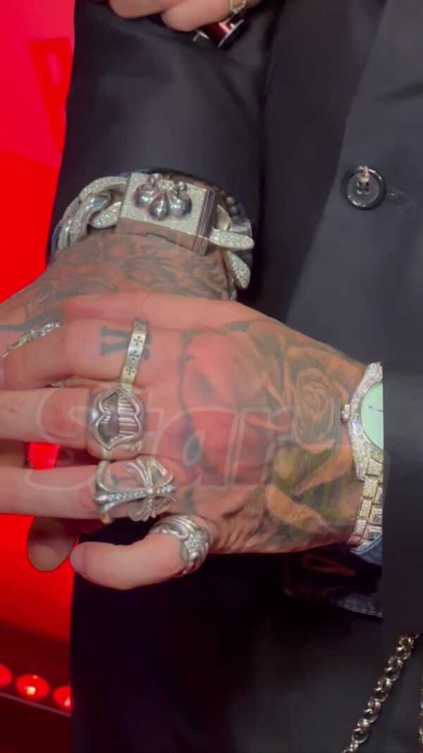 Что касается массивных украшений на пальцах, певец пояснил, что это работа его подруги, дизайнера Яны Расковаловой. «Она апгрейднула драгоценными камнями кое-какие вещи, например, обручалку, часы. Их мне подарил директор на Новый год, тут написано „какая разница, сколько времени, если ты уже опоздал“. Всего 10 экземпляров в мире», — похвастался музыкант.