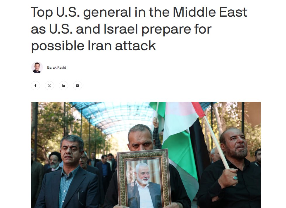 ❗️ Глава центрального командования ВС США прибыл на Ближний Восток, Вашингтон ожидает удар Ирана по Израилю в понедельник – Axios