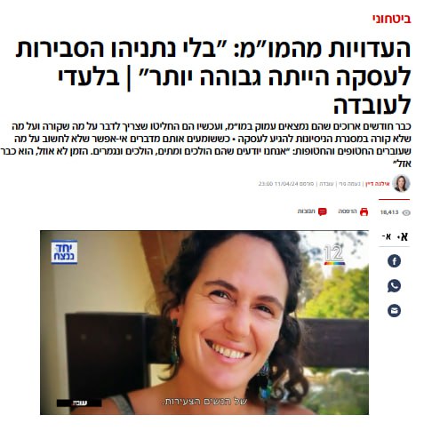 12-й канал телевидения Израиля сообщил об утечке информации из израильской делегации на переговорах по освобождению израильских заложников.