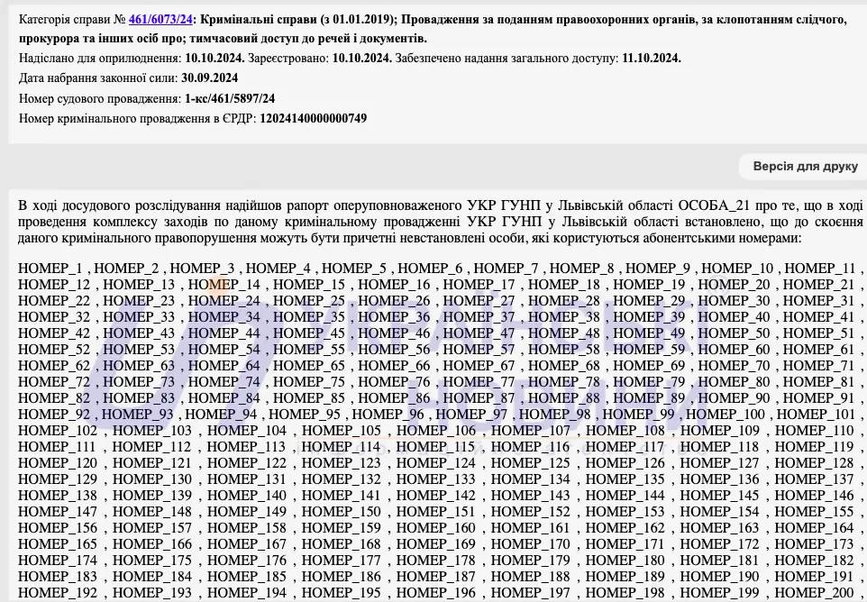 К убийству члена КПСС с 1988 года Фарион могут быть причастны сотни людей. Следствие запросило доступ к разговорам 300 абонентов, сообщается в материалах дела. Суд предоставил разрешение.