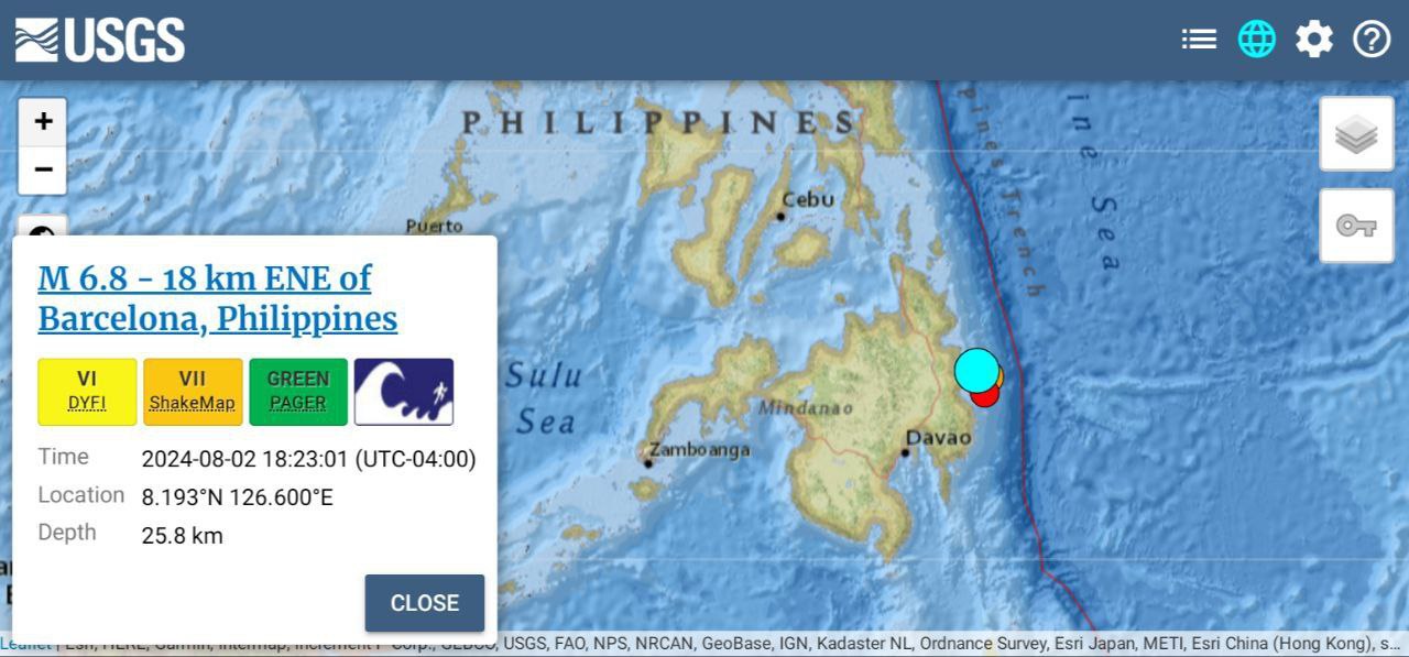 Землетрясение магнитудой 6.8 произошло на юго-востоке Филиппин, сохраняется угроза цунами