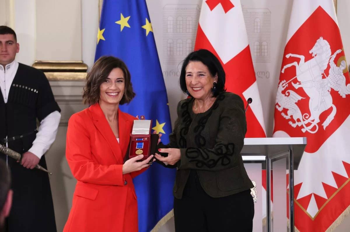 Новый президент Грузии убрал флаг ЕС из зала президентского дворца, оставив только грузинские.