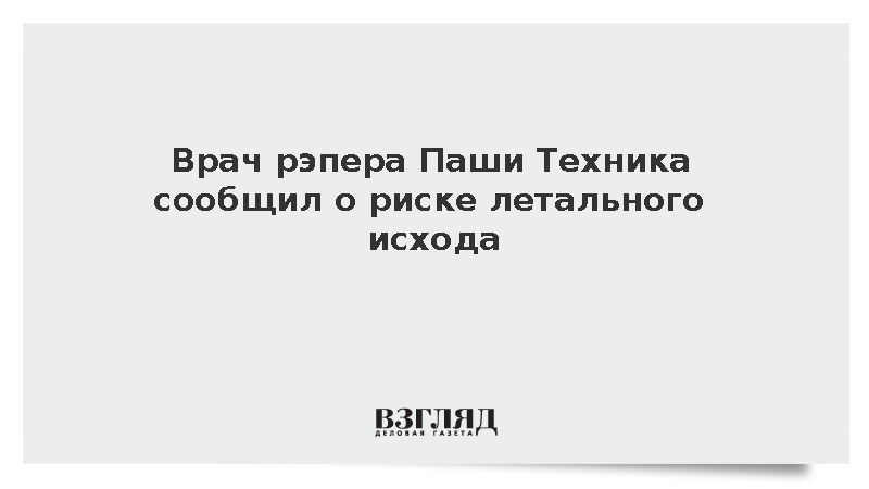 Лечащий врач рэпера Паши Техника заявил о высоком риске летального исхода, сообщает Ura.Ru.