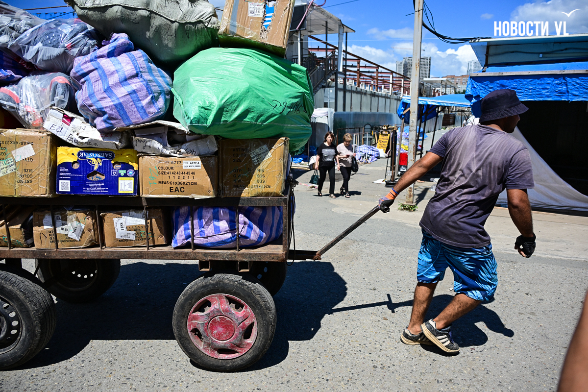 Во Владивостоке начался снос знаменитого Спортивного рынка под будущие многоэтажки. Сегодня, 8 августа, туда приехали представители закона совместно с бригадой МБУ «Содержание городских территорий», чтобы произвести принудительный демонтаж. Под раздачу попали несколько крайних павильонов. Но увидев технику и людей в форме, иностранные предприниматели самостоятельно начали сворачивать свои прилавки. Кто-то из них планирует переехать на рынок на Школьной, а кто-то плачет и ищет билеты домой. Покупатели, заставшие демонтаж, называют происходящее беспределом и жалеют, что в городе больше нет такой изюминки.