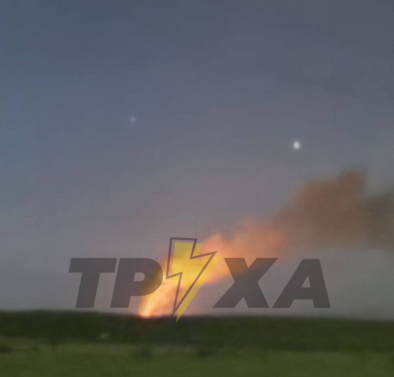 На фото пожар и вторичная детонация после прилета в Харькове.