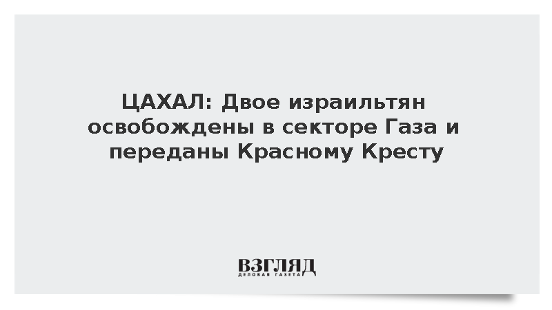 Двое израильтян, ранее удерживаемых в секторе Газа, освобождены и переданы Красному Кресту для последующей передачи израильским военным, сообщила пресс-служба Армии обороны Израиля (ЦАХАЛ).