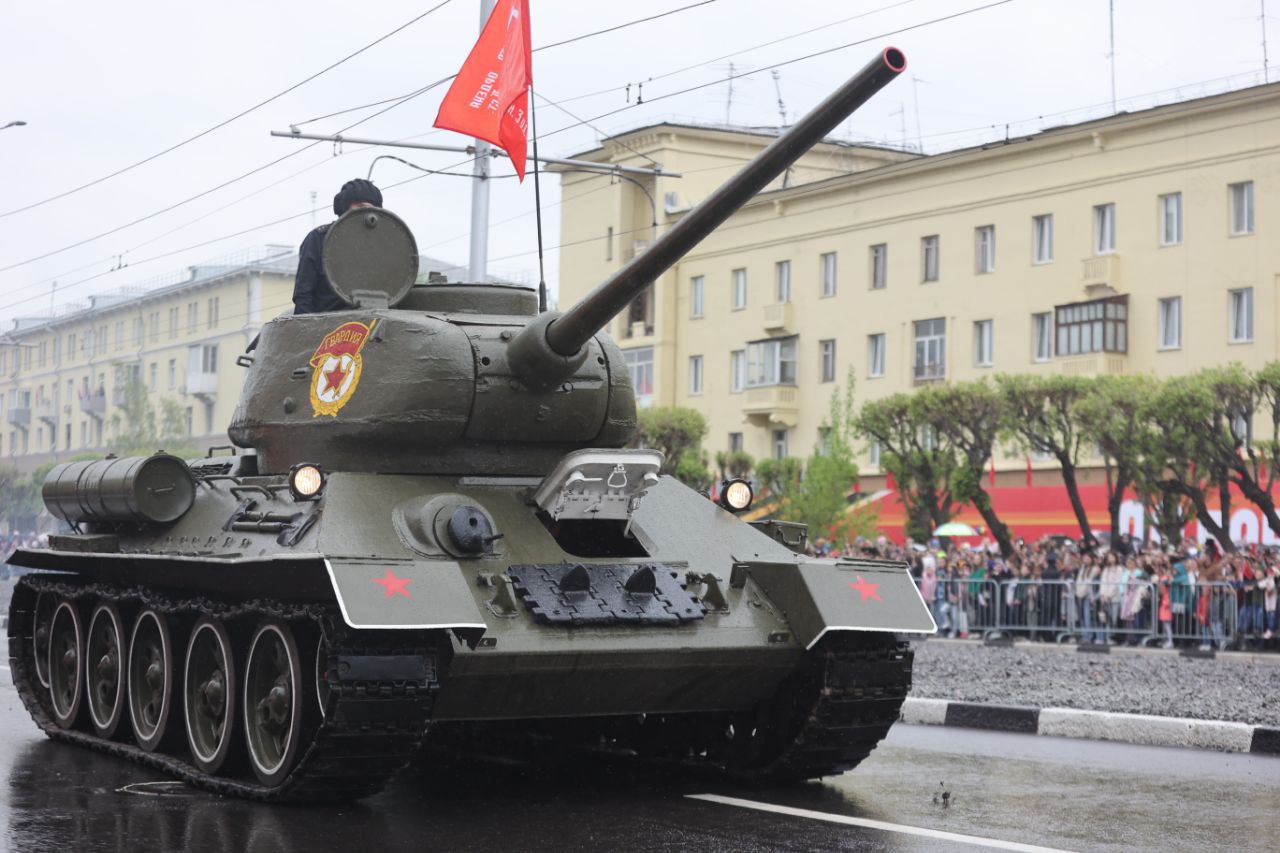 Участие в нем приняли 39 парадных расчетов. По Красрабу проехали 40 единиц современной и раритетной военной техники, в том числе символ Победы – легендарный танк Т-34.