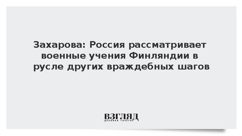 «И в этом контексте мы рассматриваем учения финских Сухопутных войск вблизи российских границ именно таким образом», – отметила она.