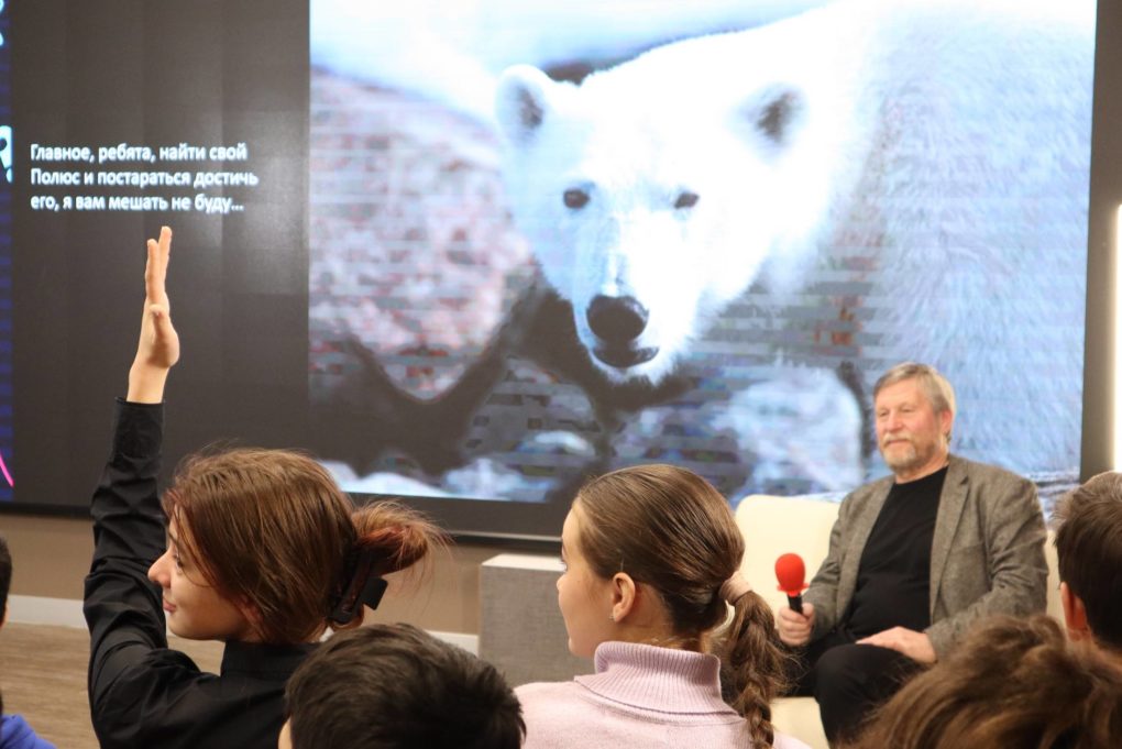 После телемоста и лекции гости смогли проверить свои знания в квизе «Узнаём Арктику» и пообщаться лично с почётным полярником Виктором Боярским.