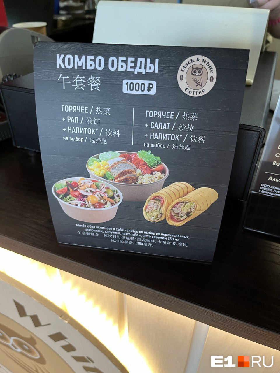 А вот те самые дорогущие обеды, которые предлагают и россиянам, и иностранцам. В составе всего три блюда: горячее, рап или салат и напиток. Отдать за комбо придется 1000 рублей.