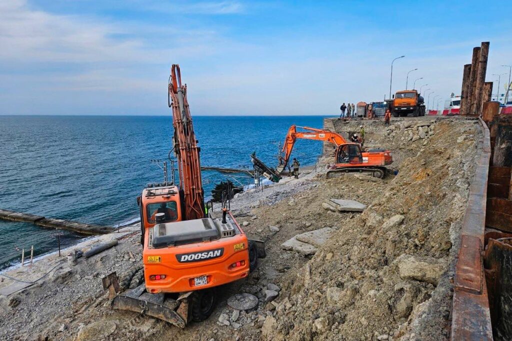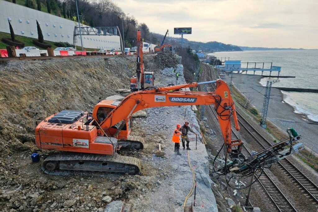 В Сочи продолжается масштабный ремонт подпорной стены на федеральной трассе
